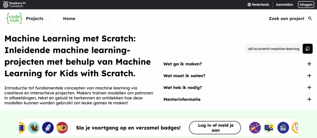 Ook de Codeclub RaspberryPi foundation stelt gratis lessen AI en Machine Learning beschikbaar.